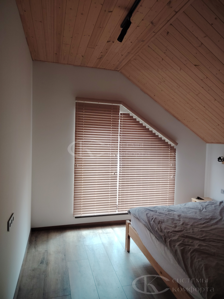Компания «Системы комфорта» изготавливает жалюзи на треугольные окна и на другие проемы нестандартной формы по индивидуальному заказу. Чаще всего они встречаются в мансарде: окно треугольной формы размещается на фронтоне и помогает обеспечить естественное освещение подкровельного пространства. Однако и в других помещениях могут быть оконные проемы необычной формы, для которых необходимо изготовить персональные системы управления светом.